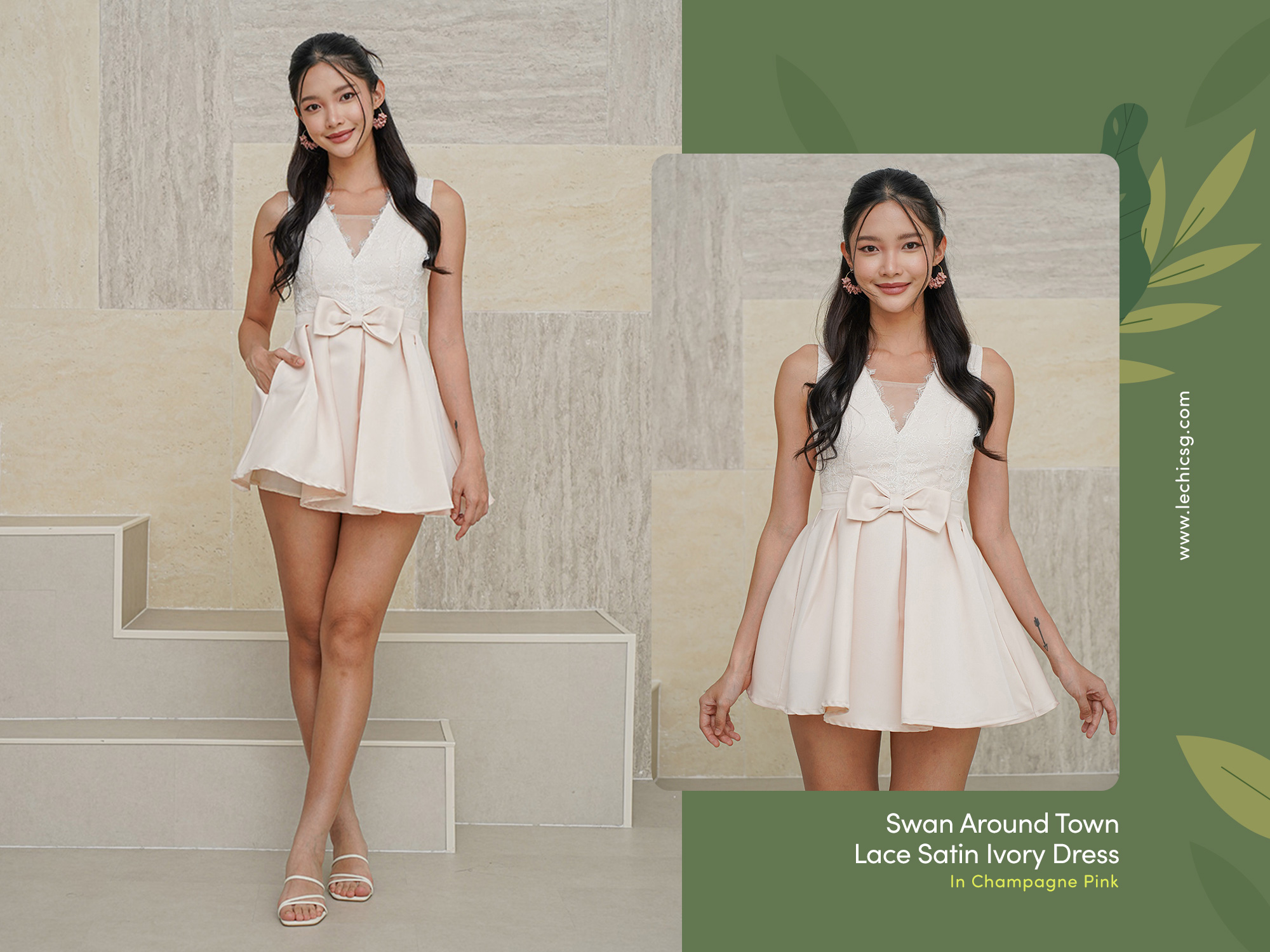 Comes with side pockets. Inner lined shorts. Non-removable bow adorned. Comes with safety mesh at chest. Fully lined, not sheer. Concealed back zip closure. Made of premium satin taffeta blend. Comes in black and champagne pink. Available in sizes S, M & L.