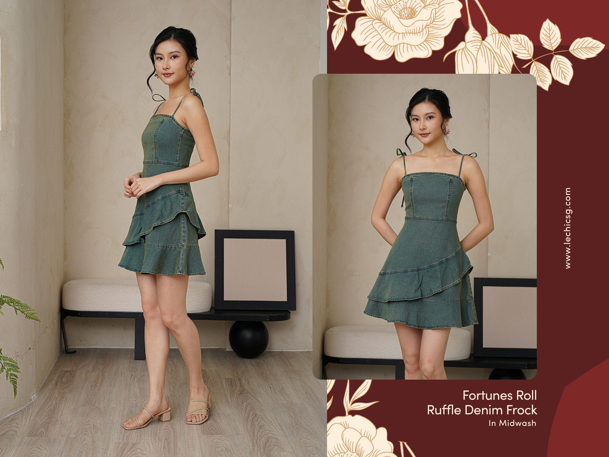 Tie straps and ruffles for a playful flourish manifest in this number, this denim dress was made for spring time adventures. Featuring a straight, sleeveless design, and tiered ruffles, this mini dress combines classic denim with a playful, feminine touch. The flattering ruffles and sleek design highlight your curves while offering a comfortable fit. Made from panels of washed denim for a deconstructed feel, it has layers and ruffles tracing the split hem. Use the ties on top to adjust the fit. Fortunes flow in this playful and fun summer dress in contemporary denim, and the flow is complete with fluid ruffles trimming the skirt line. Boosting of a playful spin, in a strappy silhouette, it carries an air of warm weather-worthy charm and laid-back, lounge-worthy flair. Bring assertive and surprising edge by sporting this denim darling, highlighted in daring Spanish ruffles. A cascade of modern ruffles traces the hem and wraps around this asymmetric skirt in an uneven, tiered style. The ruffled wrap-effect skirt infuses this chic denim dress with irresistible flamenco flair and romantic waterfall cascade frills. Two tiers of ruffles give you a touch of playful flounce. The darling neckline is shaped in an alluring style. A darling ruffle dress with flirty accents in tie straps, faded finish and ruffles, all you need is sunshine to complete the outfit. Tie straps. Smocked at back. Concealed back zip closure. Made of denim fabric. Comes in darkwash and greenwash. Available in sizes S, M & L.