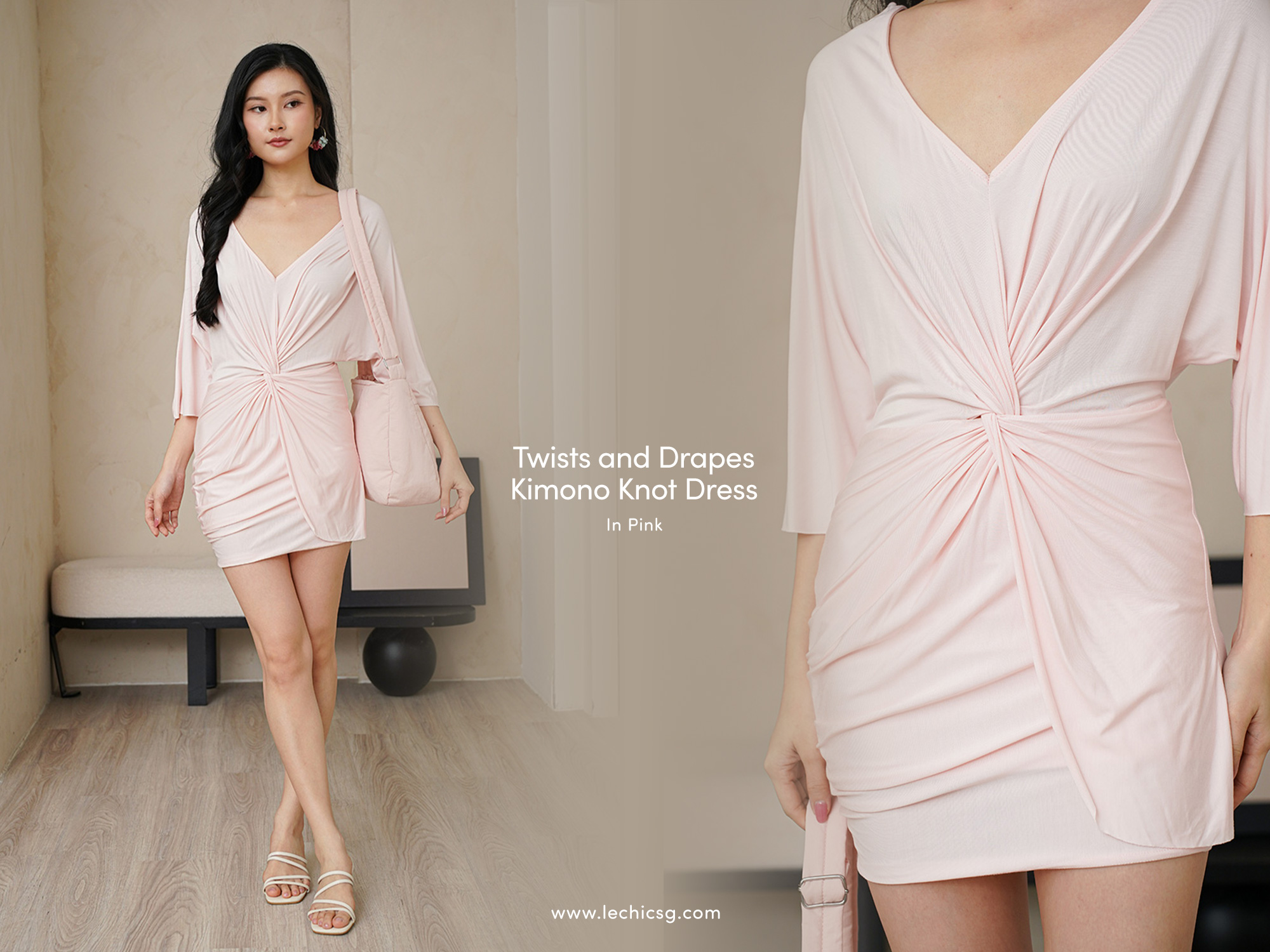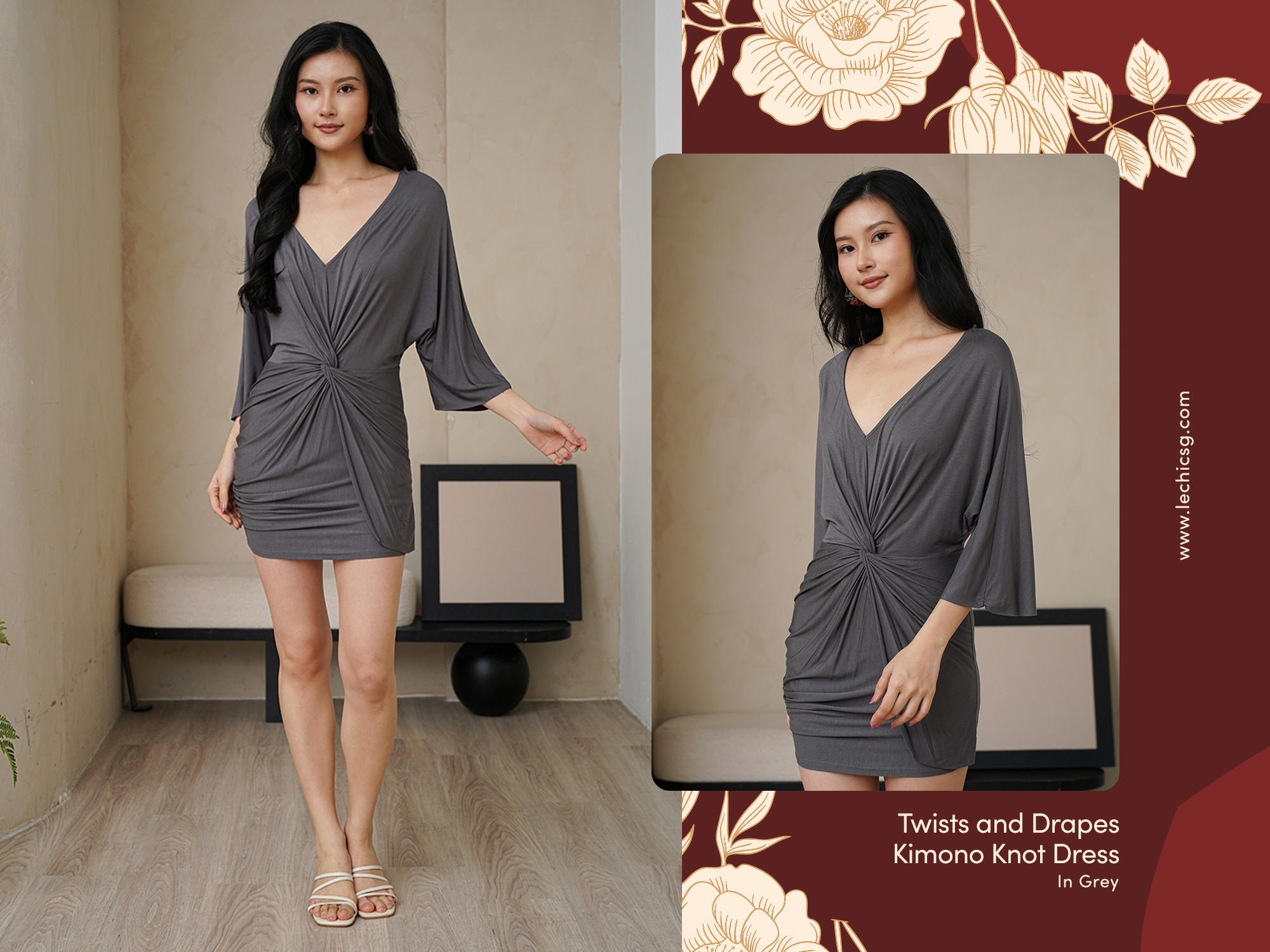 This jersey cotton dress features long bat sleeves and beautiful draping that meet in the knotted center of this figure-flattering silhouette. Twisted at the front in a statement knot, the Twists and Drapes Dress is here to enhance your curves. The intricate knot front detailing on the front waist level creates a focal point that accentuates your figure with tasteful elegance. The soft touch jersey feels amazing on your skin whilst the relaxed cut means that you can lounge around or get up to your usual business. A comfortable fit in a figure-flattering silhouette, a twisted knot at the waist adds shape to this effortless tee shirt dress. Your favourite tee shirt is now your favourite dress, this dress features a v neck, bat style sleeves, and an easy to wear, slouchy fit, in a easy to wear everyday length. A casual-luxe dress for the party circuit, this dress presents a roomy silhouette and the soft, well-draped blend of cotton jersey slub gets a beautiful boost from its wonderfully soft fabric. Straight, simple and semi-fitted, this shift tee dress effortlessly shifts from desk to dinner. Inner lined waist down, not sheer. Pull on styling. Made of stretchy jersey rayon cotton. Comes in grey, black and pink. Available in sizes S, M & L.