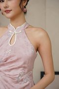 Butterfly Hanami Silk Embroidered Qipao Dress Pink