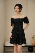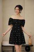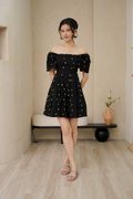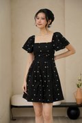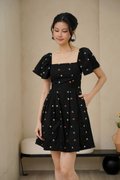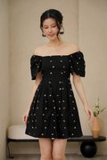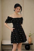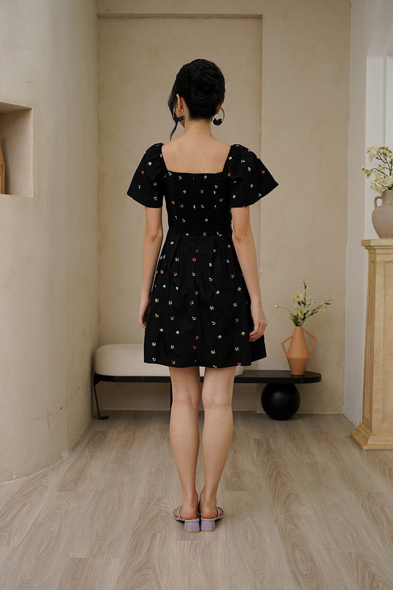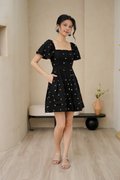 Cherry Crush Motifs Pleated Broderie Dress Black