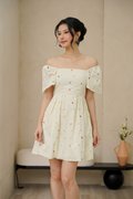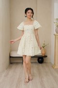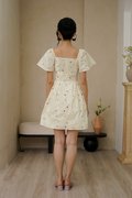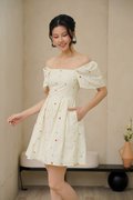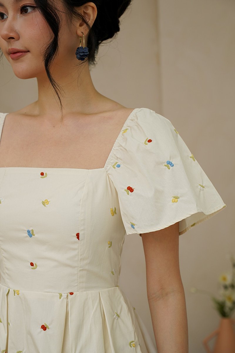 Cherry Crush Motifs Pleated Broderie Dress Ecru