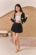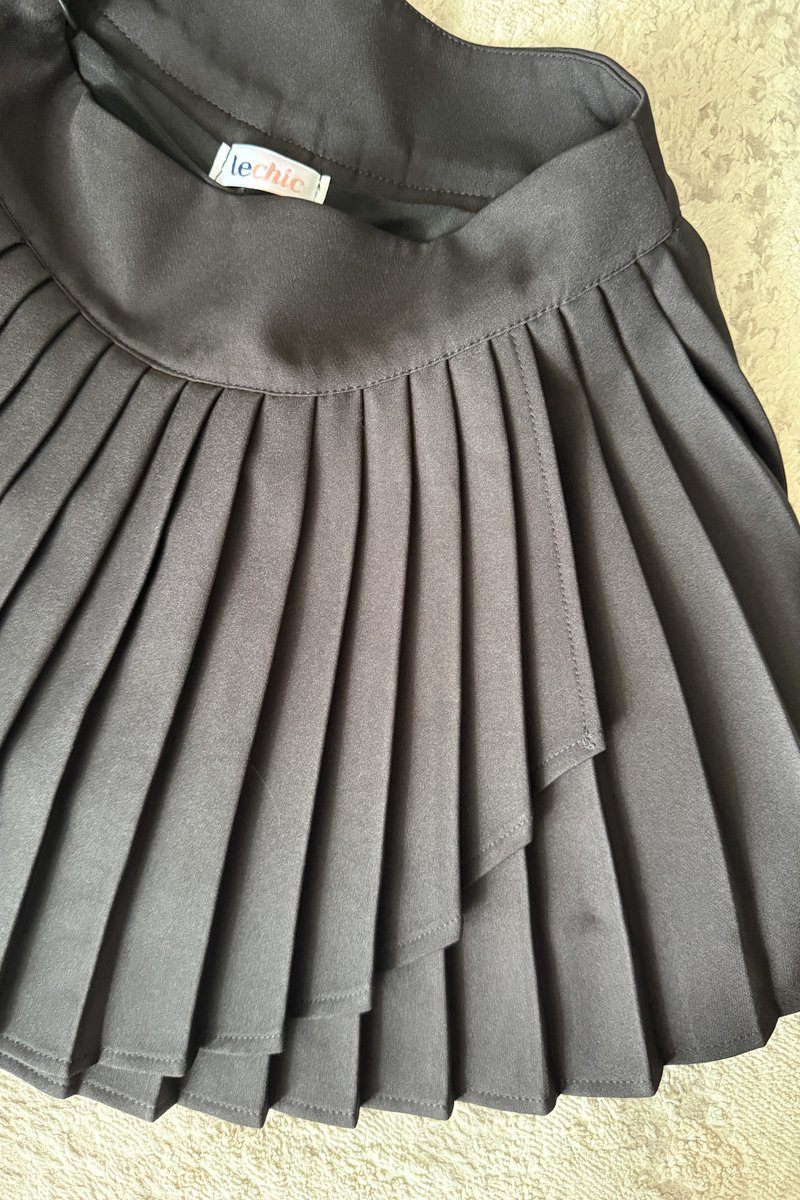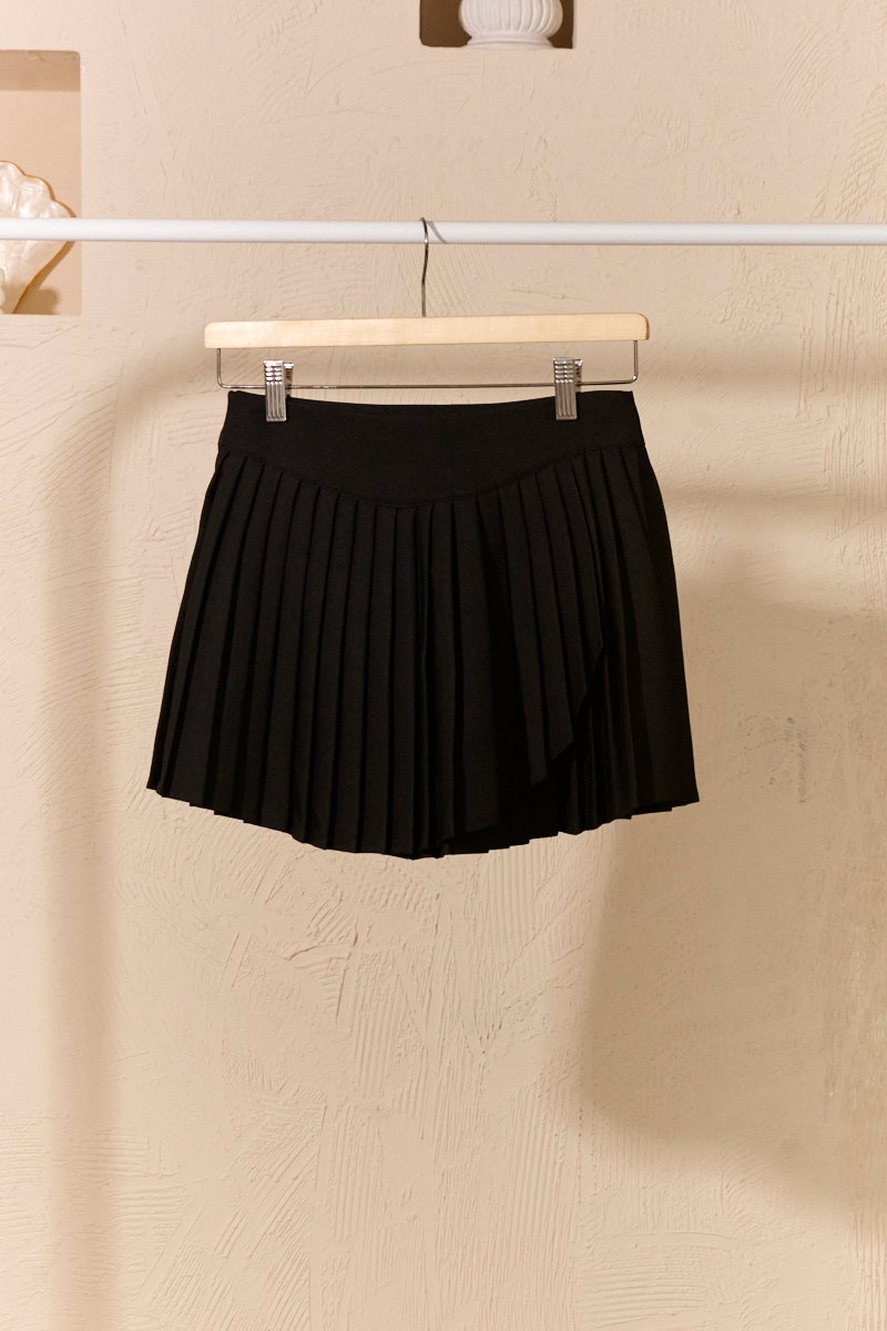 This asymmetrical layered skirt features a firm texture and dynamic pleated details. The pleated design adds volume and movement, creating a dynamic and elegant look, perfect for casual or dressy occasions. Asymmetric hemline creates contemporary appeal while crisp construction techniques ensure luxury finishing. Lightweight suiting fabric provides professional appropriateness while the sculptural silhouette photographs beautifully. Asymmetric cutting craftsmanship. Modern commuter elegance. Whether you're flowing through yoga, perfecting your backhand on the tennis court, or dancing your heart out, this pleated skort keeps up with every move. Featuring built-in shorts for coverage and comfort, it's breathable, quick-drying, and designed to flatter with a touch of playful elegance. It features a unique layered design. An innovative revise of a uniform staple, this active skirt features sharp knife pleats in two sizes with a top panel overlay. A balance between fluidity and form. Inner lined with shorts. Concealed side zip closure. Made of cotton twill blend and nylon (inner lining). Comes in black, grey and ecru. Available in sizes S, M & L.