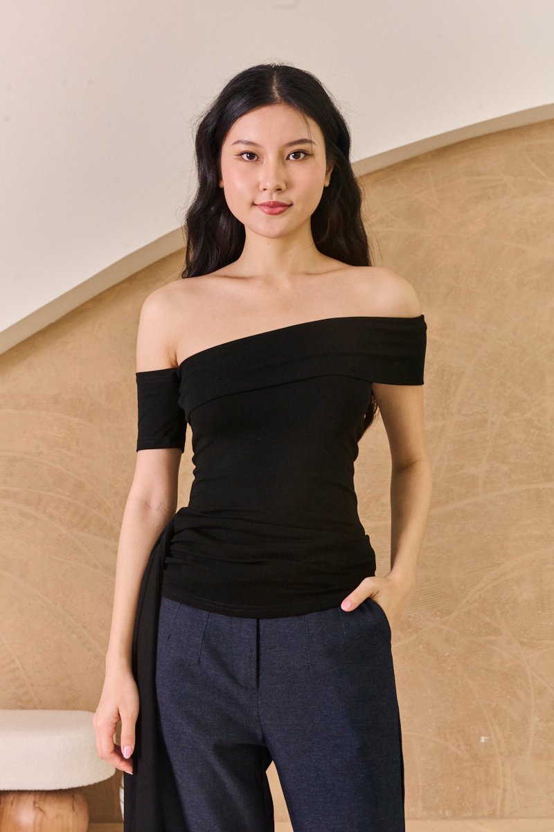 If you love denim or body-positive re-invented classics. Designed with an off-the-shoulder neckline and gathered shoulder overlay, this silhouette flatters with a fitted bodice and soft cascade drape at the side. The single sleeve and sash detailing create a modern focal point, while the slant neckline and cascading skirt hem bring bold femininity to life. Finished in a slinky fabrication, this cotton top is your go-to for making an unforgettable entrance. Crafted from high-quality rayon, it features in solid hues and an asymmetric hem, ensuring you stand out in any crowd. Asymmetrical off-shoulder top with a feature tie at the hem. The side seam cascade detail is designed to create gathered detailing across the body, ending in a fluid flourish. Presenting this exquisite draped top, showcasing an innovative asymmetrical neckline that beautifully frames the collar. The sophisticated design features a single sleeve and an eye-catching asymmetric hem, that adds an element of playful elegance. This top is expertly crafted to offer a regular fit, accentuating the wearer's silhouette with grace and style. It features a one-shoulder statement neckline and a solid body. Composed of a premium fabric, this top is totally fun to wear thanks to its marvellous comfort. A sleek and modern staple, this slim-fit blouse offers a true-to-size silhouette with a stylish slant neckline. Designed with open shoulders for a bold touch, it features a twist detail at the hem adding texture and dimension. Pull on styling. Made of 95% rayon 5% spandex. Very stretchy. Comes in white, navy blue, black and brown. Available in sizes S, M & L.