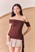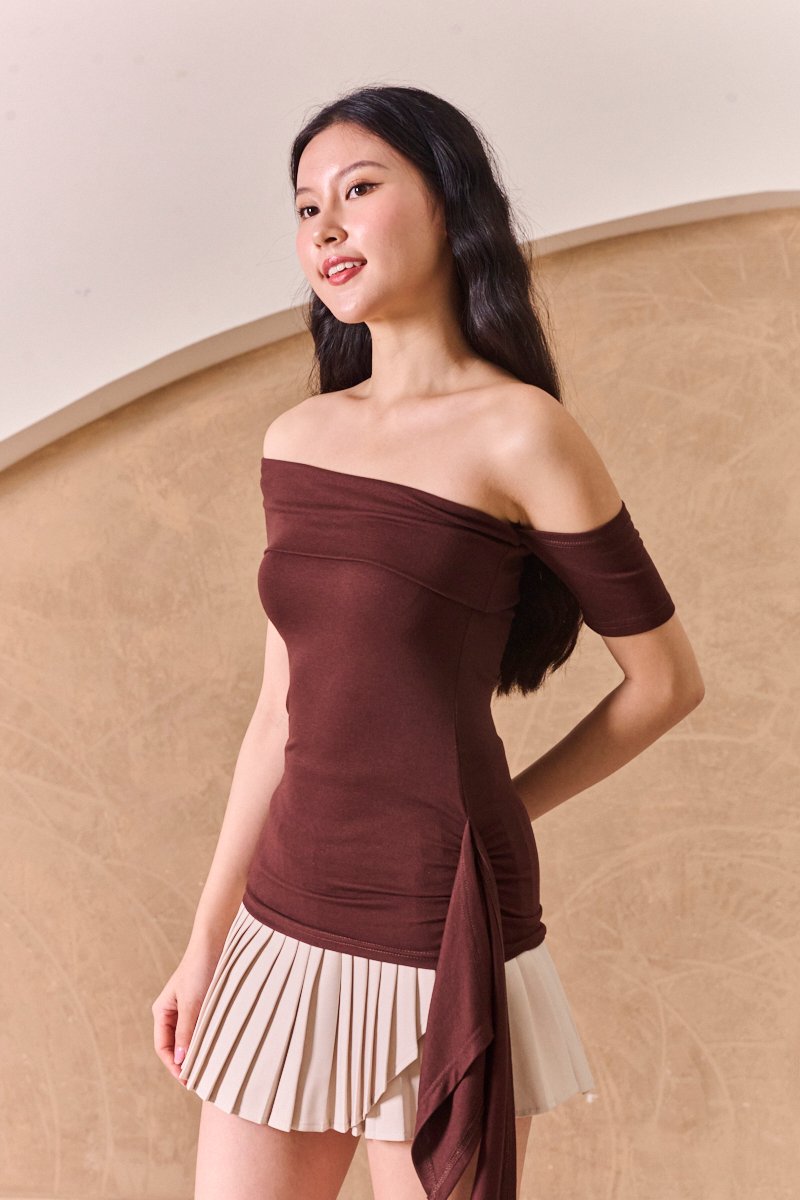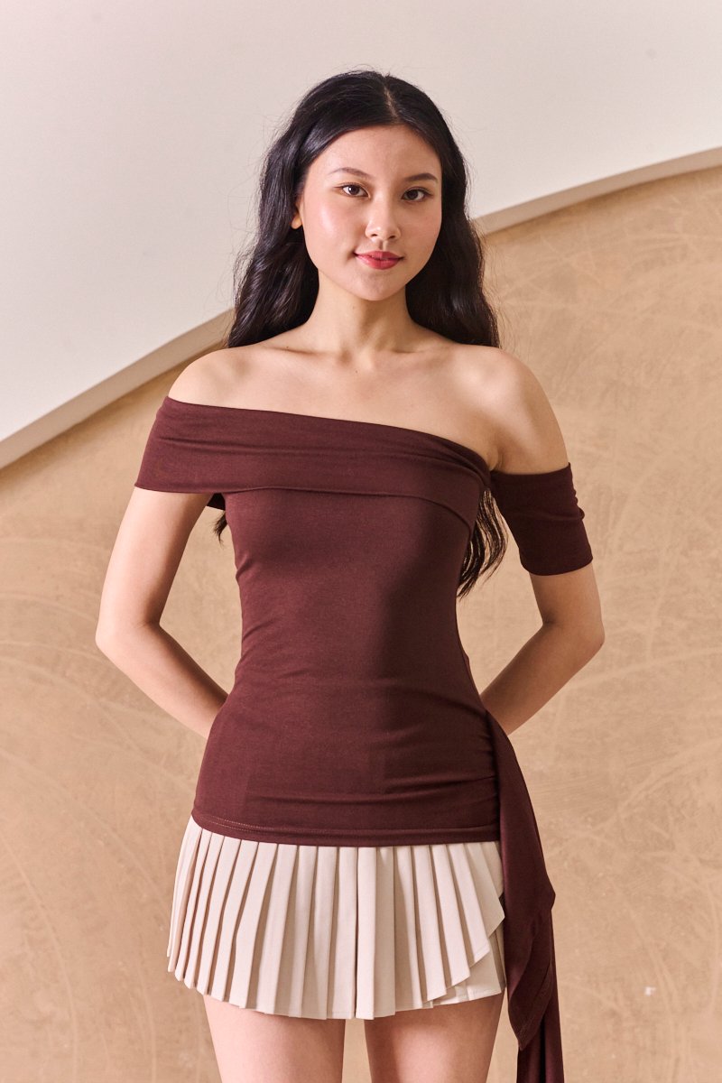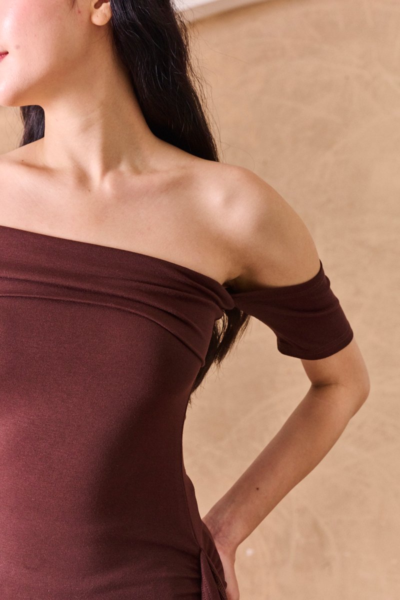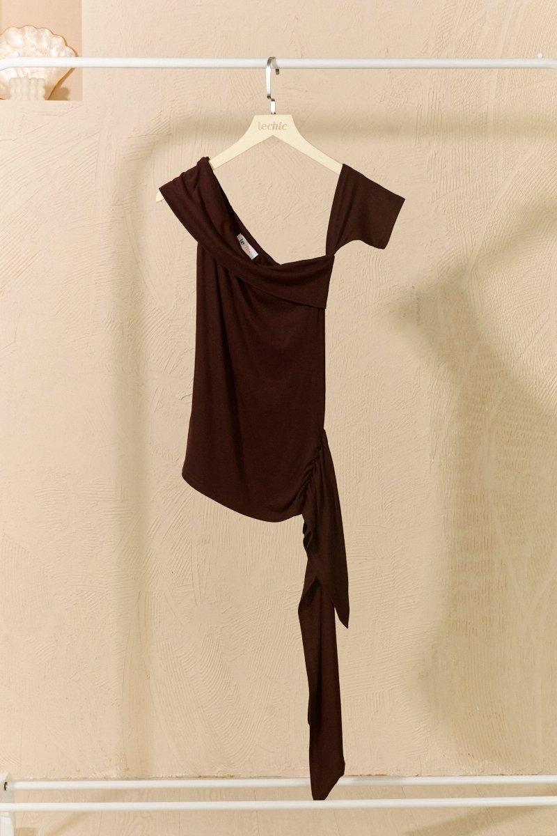If you love denim or body-positive re-invented classics. Designed with an off-the-shoulder neckline and gathered shoulder overlay, this silhouette flatters with a fitted bodice and soft cascade drape at the side. The single sleeve and sash detailing create a modern focal point, while the slant neckline and cascading skirt hem bring bold femininity to life. Finished in a slinky fabrication, this cotton top is your go-to for making an unforgettable entrance. Crafted from high-quality rayon, it features in solid hues and an asymmetric hem, ensuring you stand out in any crowd. Asymmetrical off-shoulder top with a feature tie at the hem. The side seam cascade detail is designed to create gathered detailing across the body, ending in a fluid flourish. Presenting this exquisite draped top, showcasing an innovative asymmetrical neckline that beautifully frames the collar. The sophisticated design features a single sleeve and an eye-catching asymmetric hem, that adds an element of playful elegance. This top is expertly crafted to offer a regular fit, accentuating the wearer's silhouette with grace and style. It features a one-shoulder statement neckline and a solid body. Composed of a premium fabric, this top is totally fun to wear thanks to its marvellous comfort. A sleek and modern staple, this slim-fit blouse offers a true-to-size silhouette with a stylish slant neckline. Designed with open shoulders for a bold touch, it features a twist detail at the hem adding texture and dimension. Pull on styling. Made of 95% rayon 5% spandex. Very stretchy. Comes in white, navy blue, black and brown. Available in sizes S, M & L.