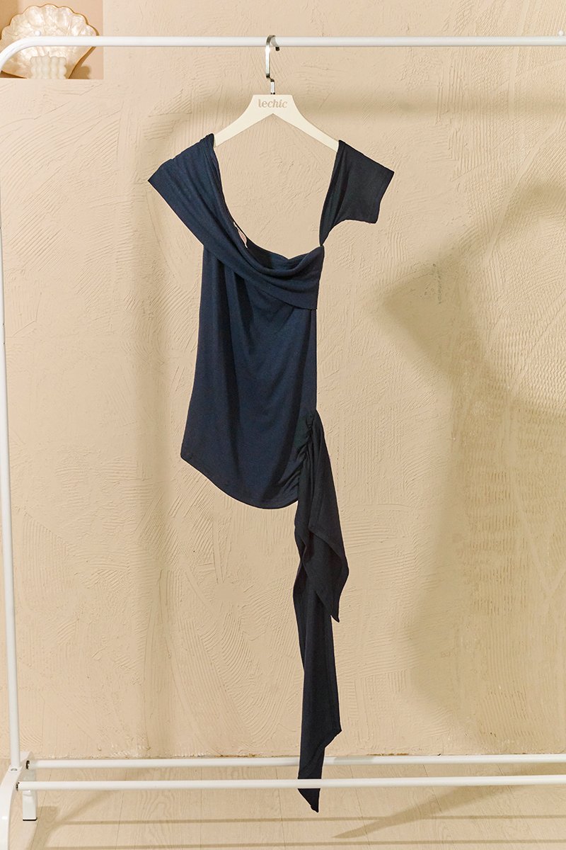 Drapefully One Sided Cascade Hem Tee Navy Blue
