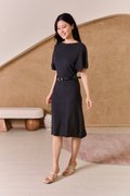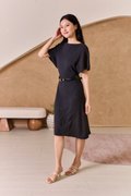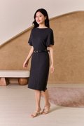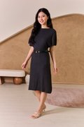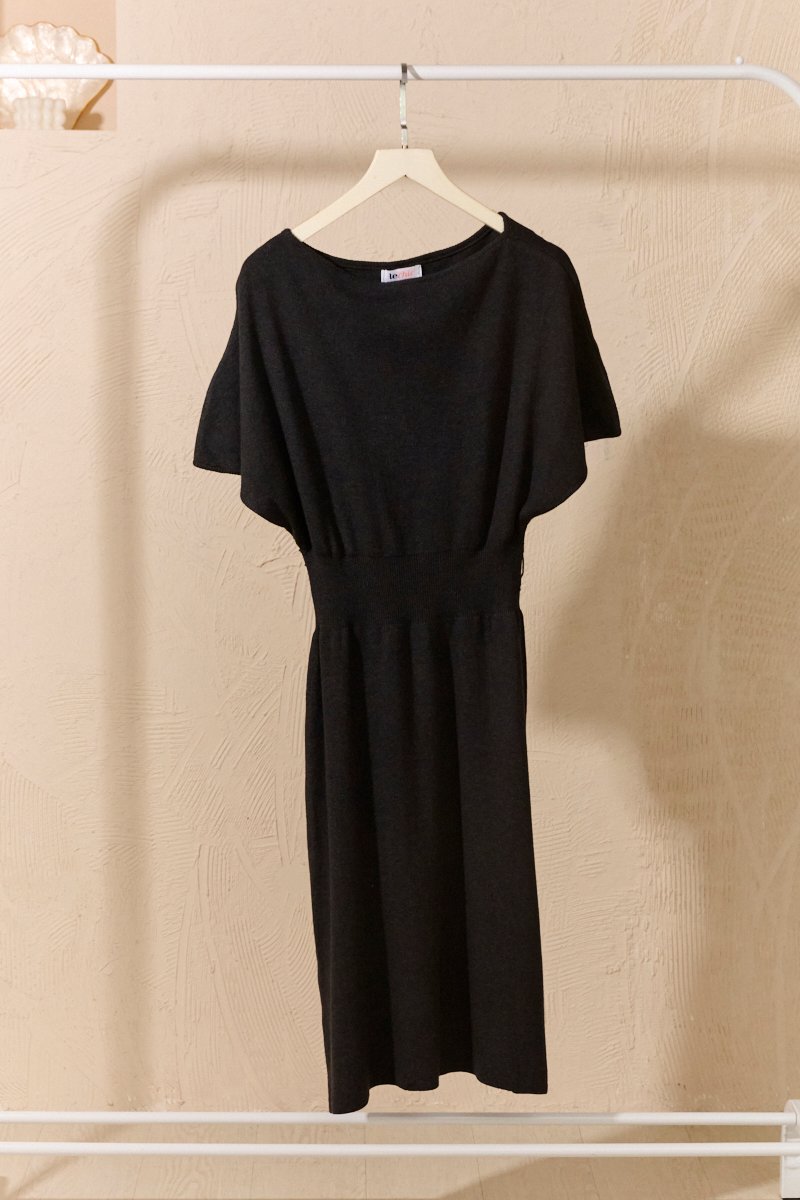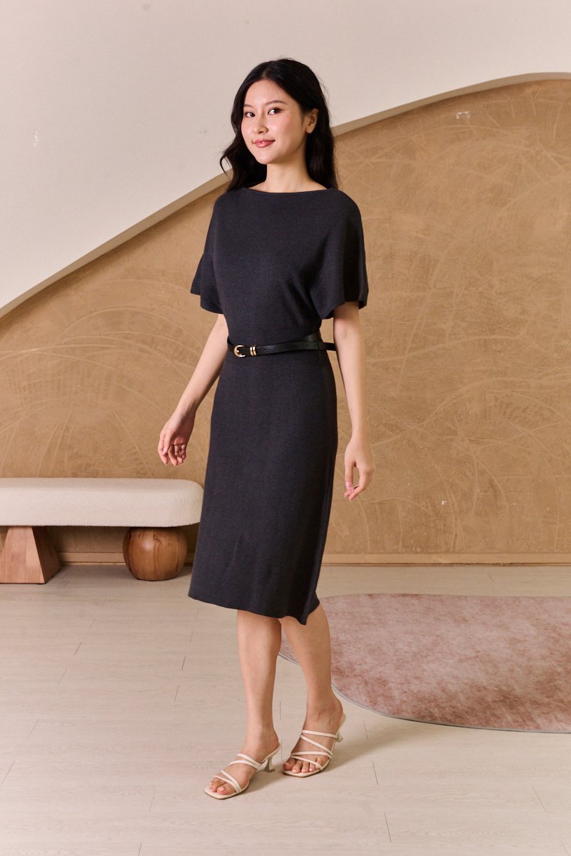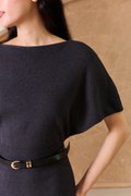 Step out in timeless style with our classic knit sheath dress. Perfect for everything from workdays to evening gatherings, this dress features a scoop neck, batwing wide sleeves and a soft knit texture that delivers both comfort and sophistication. The included slim belt adds definition to the waist, making it a flattering choice for any occasion. Sleek, sophisticated and versatile, this dress is a wardrobe staple for effortless elegance. The slim belt cinches the waist for a refined silhouette, making it perfect for both office and evening wear. Crafted from a soft, stretchy modal cotton blend in high-quality Knit, it impresses with its smooth texture and pleasant feel. The classic round scoop neckline flows seamlessly into its clean lines, while the set-in wide sleeves create a clean silhouette. A subtly knitted tunnel at the waist provides a surprising opening for the separate PU belt with its matte, gold-tone metal buckle – allowing for a customized waistline. The slightly fitted pull-on style underscores the dress's comfortable yet stylish character. A versatile favorite for everyday urban life or elegant occasions. Dive into the day in this belted jersey dress, the epitome of comfort and style. Its soft jersey fabric, enriched with a touch of elastane, promises a flattering fit that moves with you, while the belt defines your silhouette. Perfect for both office hours and weekend brunches, this dress adapts effortlessly to every occasion. Pull on styling. Made of stretchy modal cotton knit. One colour only. Available in sizes S, M & L.