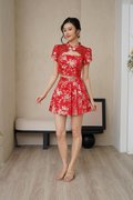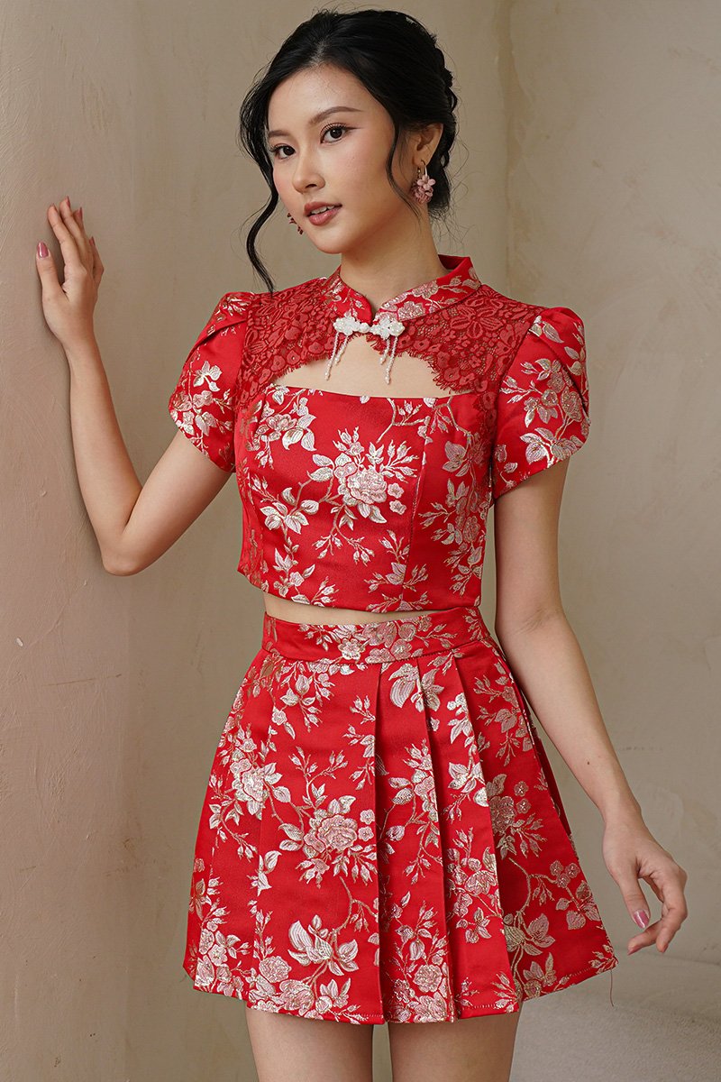 Fleeting Gilded Moments Lace Cheongsam Top Red