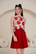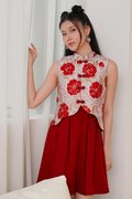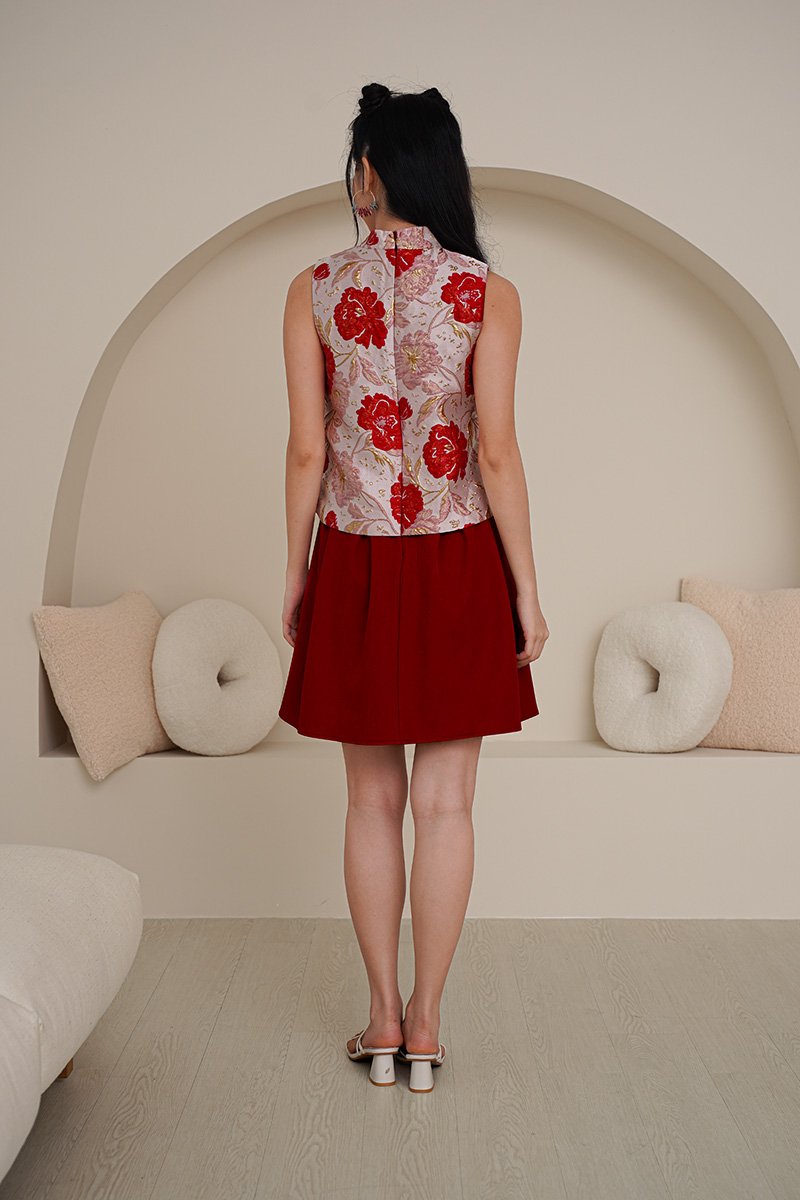 Full Grandeur of Spring Pleated Oriental Dress Red