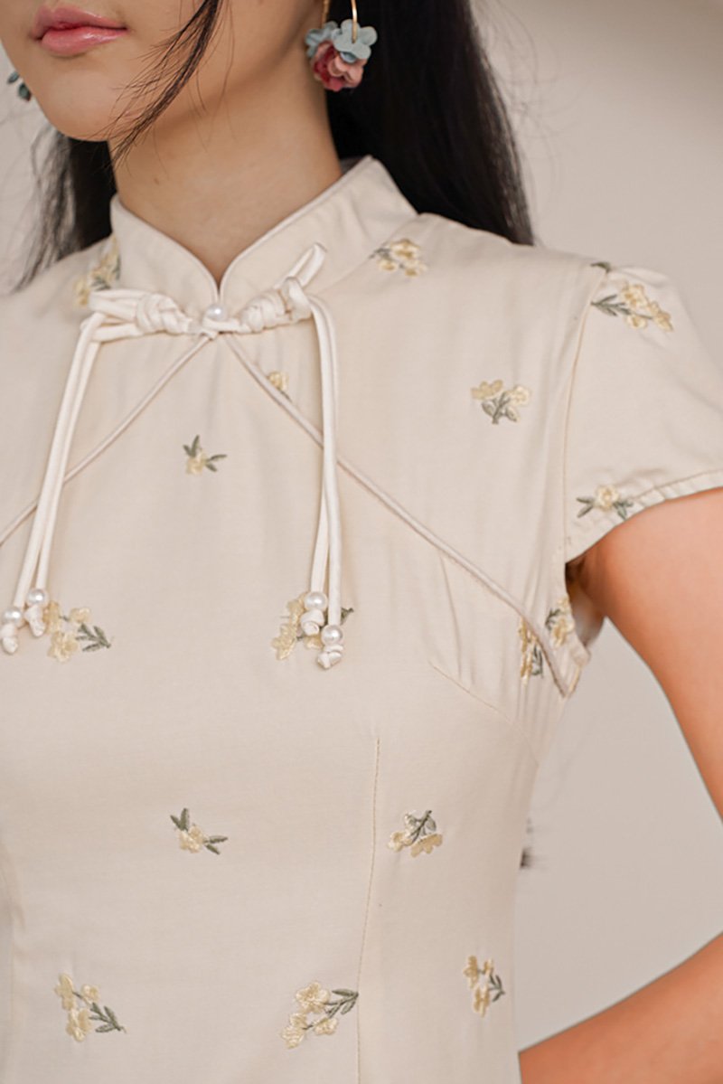 Heirloom Embroider Florals Qipao Dress Butter Yellow