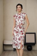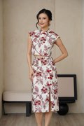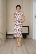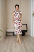 Inspired by the tender bloom of lilies, this cheongsam number captures elegance in its most effortless form, inspired by a porcelain vase. Lightweight tonal florals drift over a silhouette designed to shape and soften, while its subtle details complete the look with quiet romance. Adorned with a soft-blue / festive-red botanical print that bring painterly charm to the silhouette. Brushstroke flowers sweep soft colour over this sharp-but-flowy coordinate. It's decorated with pretty tonal lilies inspired by prints from the '30s and has capped cheongsam sleeves that enhance the feminine feel. With 3D florals in peonies, camellias, lilies, our oriental number carries the essence of each flower. Inspired by porcelain artistry and modern romance, this white base cheongsam number features tonal vase florals blooming across. The mandarin collar nods to tradition, while the tempered porcelain florals add soft, contemporary allure. Delicate porcelain-like vintage flowers adorn a regal tonal background, unexpectedly harmonizing with the interplay of festive floristry. Delicate peony and lily motifs in blue or red on an ivory base, mirroring the artistry of Ming Dynasty porcelain. The porcelain colour scheme pays homage to China’s ceramic mastery, transforming traditional art into wearable elegance. Functional pankou buttons. Fully lined, not sheer. Exposed back zip closure for top, concealed back zip closure for skirt. Made of cotton poly blend. Comes in red and blue. Available in sizes S, M & L.