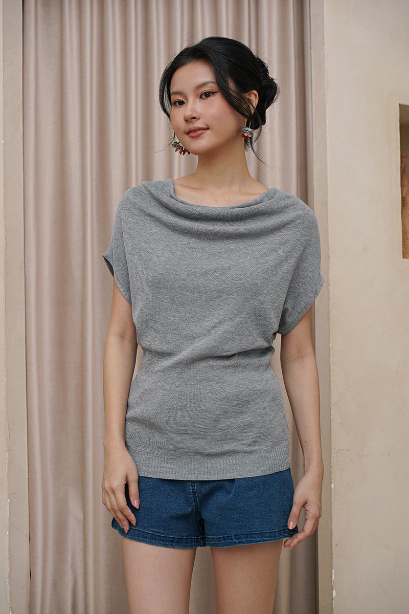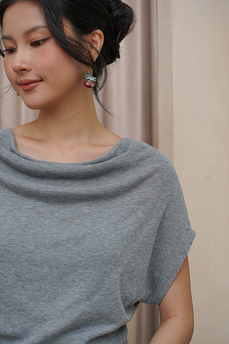 Loosely Held Drapes Cowl Knit Top Ash Grey