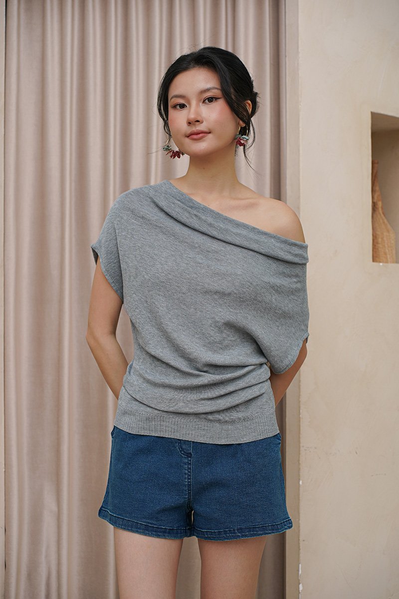 Experience the versatility and style of our asymmetrical neckline knit top - perfect for this season! Elevate any outfit, from casual to dressed up, with this gorgeous knit top. This stylish top is crafted from soft, high-quality cotton knit fabric, offering both comfort and breathability. This basic knit offers versatile styling with a design that can be worn one-shoulder or off-shoulder, or cowl-neck style. Its textured knit fabric brings a refined finish to this adaptable piece. It can be styled in two versatile ways — worn as a classic off-shoulder for a feminine look, or adjusted to a slant neckline with one shoulder exposed for an effortlessly chic vibe. The fabric provides flexibility, ensuring ease of movement throughout the day. The batwing short sleeves create a relaxed, airy silhouette, while the cinched in waist design enhances your natural curves for a flattering fit. Perfect for dressing up or down, this top effortlessly combines chic and casual elements, making it a versatile addition to your wardrobe. Soft, sweet, but never basic. An asymmetric drape that contours without clinging. Features a relaxed draped cowl neckline and a fluid, comfortable fit. Cut in a soft, stretchy knit that hugs your body comfortably, this top features a flattering draped bodice that gracefully conceals the midsection. The asymmetrical neckline adds a touch of modernity to an otherwise simple silhouette, while the longline fit gives you the coverage and ease of pairing you’ve asked for. Multi way styling top. Pull on styling. Made of 6% merino 20% nylon 30% acrylic cotton 44% poly fiber. Comes in black, ash grey and white. Available in sizes S & M.