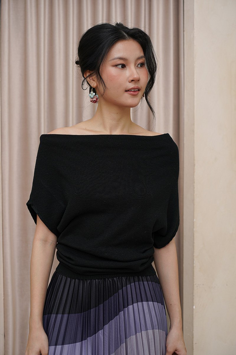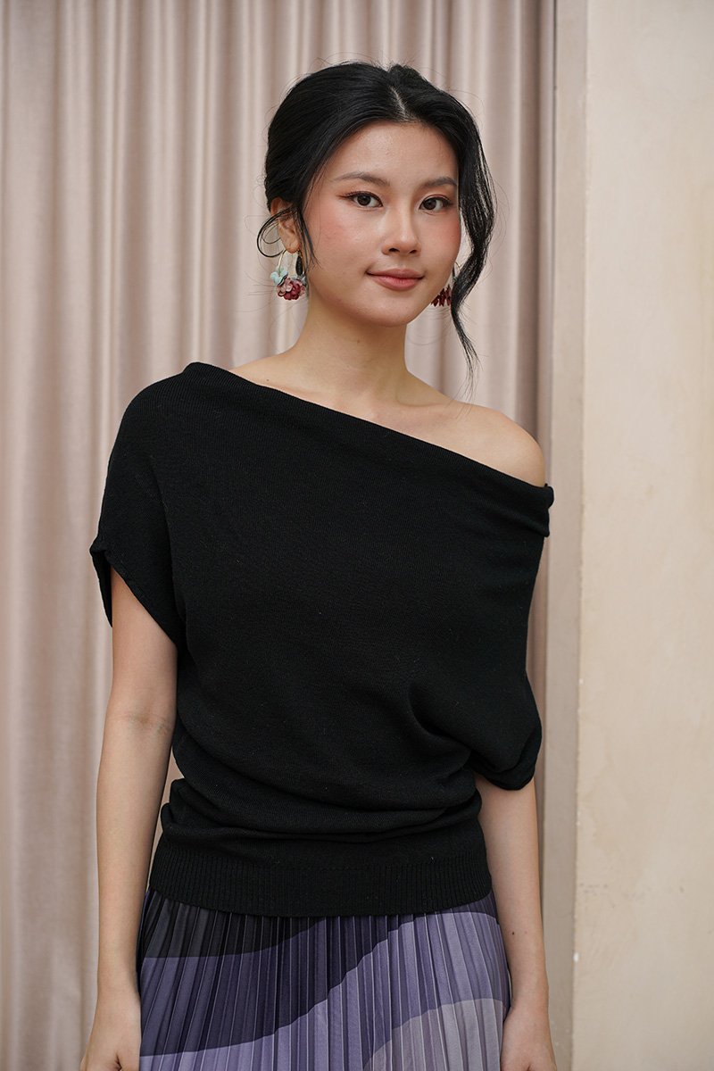 Experience the versatility and style of our asymmetrical neckline knit top - perfect for this season! Elevate any outfit, from casual to dressed up, with this gorgeous knit top. This stylish top is crafted from soft, high-quality cotton knit fabric, offering both comfort and breathability. This basic knit offers versatile styling with a design that can be worn one-shoulder or off-shoulder, or cowl-neck style. Its textured knit fabric brings a refined finish to this adaptable piece. It can be styled in two versatile ways — worn as a classic off-shoulder for a feminine look, or adjusted to a slant neckline with one shoulder exposed for an effortlessly chic vibe. The fabric provides flexibility, ensuring ease of movement throughout the day. The batwing short sleeves create a relaxed, airy silhouette, while the cinched in waist design enhances your natural curves for a flattering fit. Perfect for dressing up or down, this top effortlessly combines chic and casual elements, making it a versatile addition to your wardrobe. Soft, sweet, but never basic. An asymmetric drape that contours without clinging. Features a relaxed draped cowl neckline and a fluid, comfortable fit. Cut in a soft, stretchy knit that hugs your body comfortably, this top features a flattering draped bodice that gracefully conceals the midsection. The asymmetrical neckline adds a touch of modernity to an otherwise simple silhouette, while the longline fit gives you the coverage and ease of pairing you’ve asked for. Multi way styling top. Pull on styling. Made of 6% merino 20% nylon 30% acrylic cotton 44% poly fiber. Comes in black, ash grey and white. Available in sizes S & M.