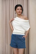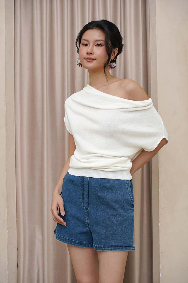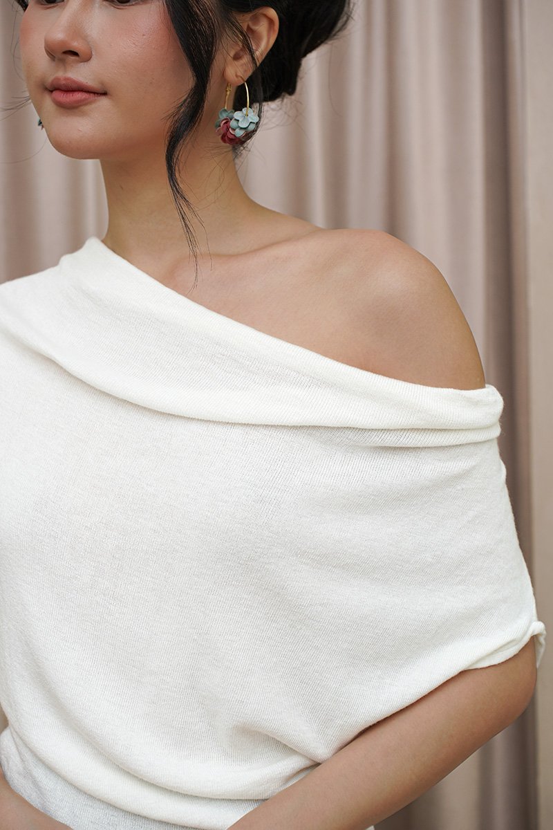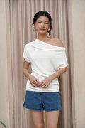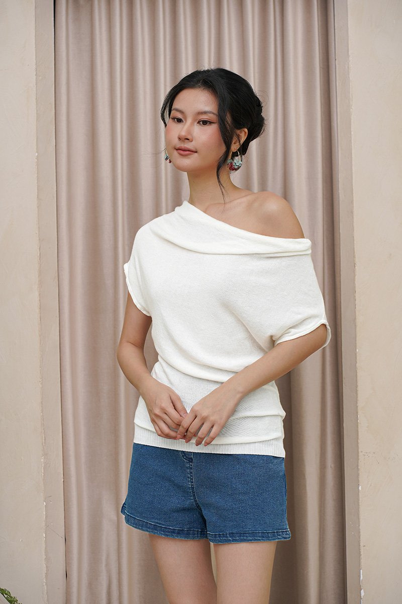 Experience the versatility and style of our asymmetrical neckline knit top - perfect for this season! Elevate any outfit, from casual to dressed up, with this gorgeous knit top. This stylish top is crafted from soft, high-quality cotton knit fabric, offering both comfort and breathability. This basic knit offers versatile styling with a design that can be worn one-shoulder or off-shoulder, or cowl-neck style. Its textured knit fabric brings a refined finish to this adaptable piece. It can be styled in two versatile ways — worn as a classic off-shoulder for a feminine look, or adjusted to a slant neckline with one shoulder exposed for an effortlessly chic vibe. The fabric provides flexibility, ensuring ease of movement throughout the day. The batwing short sleeves create a relaxed, airy silhouette, while the cinched in waist design enhances your natural curves for a flattering fit. Perfect for dressing up or down, this top effortlessly combines chic and casual elements, making it a versatile addition to your wardrobe. Soft, sweet, but never basic. An asymmetric drape that contours without clinging. Features a relaxed draped cowl neckline and a fluid, comfortable fit. Cut in a soft, stretchy knit that hugs your body comfortably, this top features a flattering draped bodice that gracefully conceals the midsection. The asymmetrical neckline adds a touch of modernity to an otherwise simple silhouette, while the longline fit gives you the coverage and ease of pairing you’ve asked for. Multi way styling top. Pull on styling. Made of 6% merino 20% nylon 30% acrylic cotton 44% poly fiber. Comes in black, ash grey and white. Available in sizes S & M.