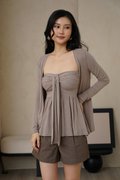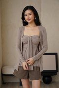 Mellowing Serenity Padded Tube Cardigan Set Taupe Grey
