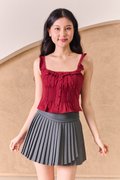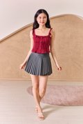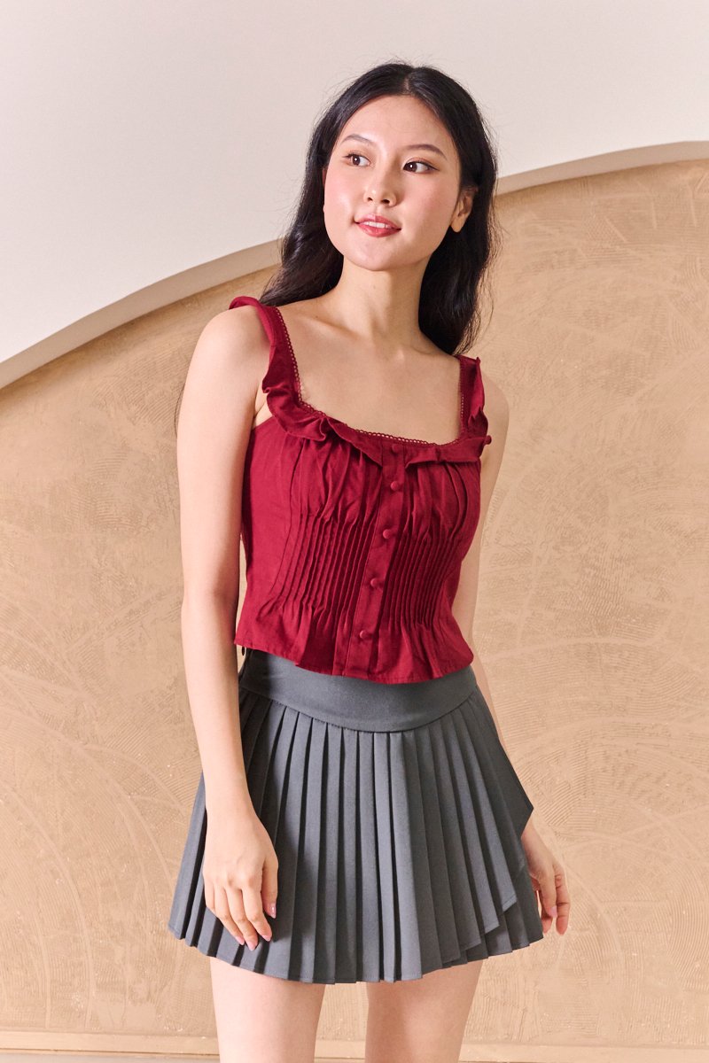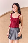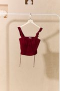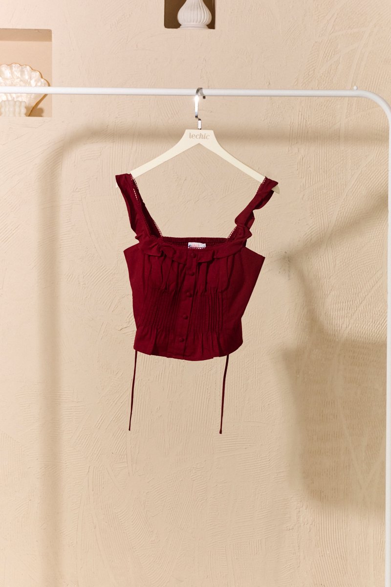 Pintucked Thoughts Padded Top Burgundy Red