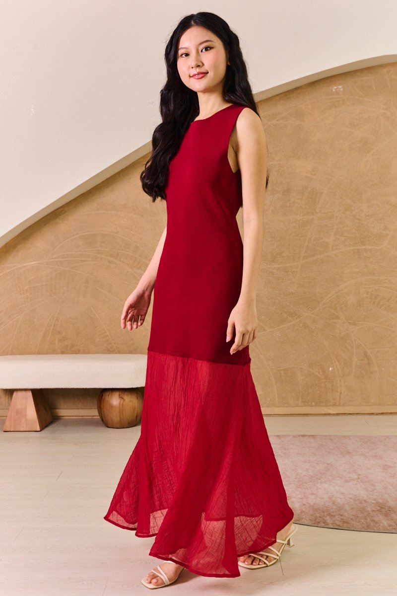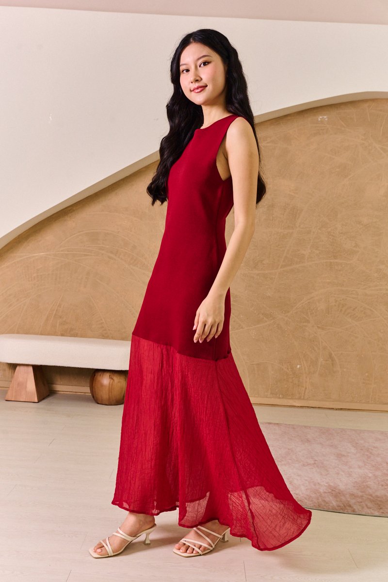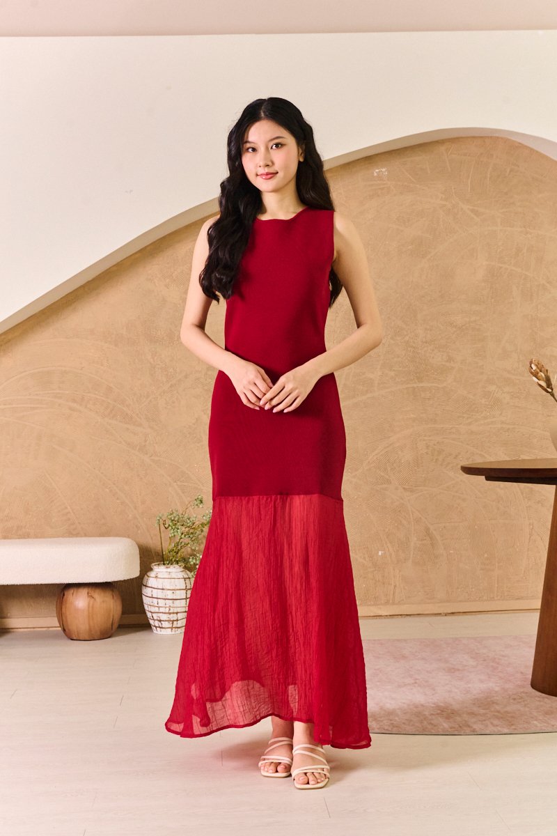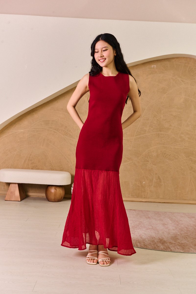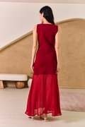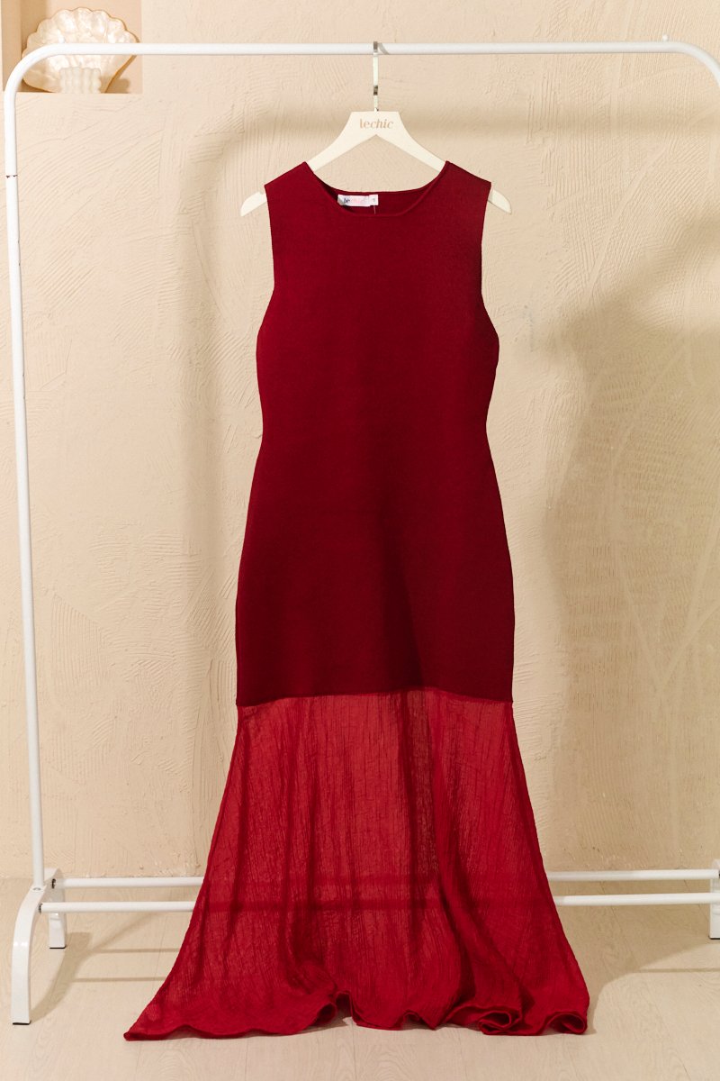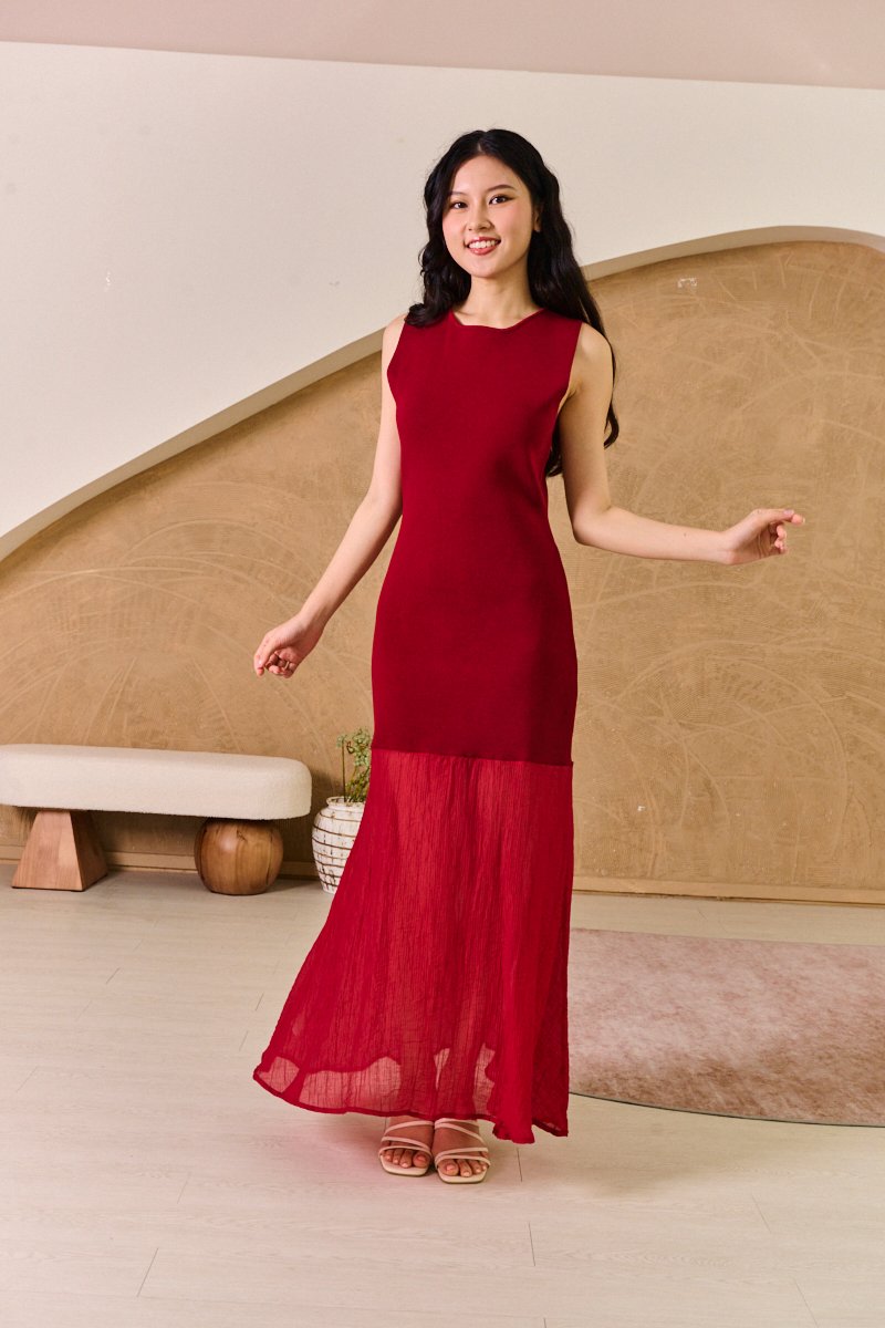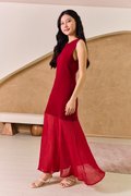 Plisado Soleil Combined Knit Maxi Dress Rouge