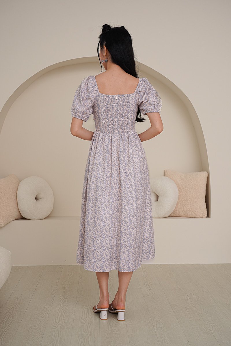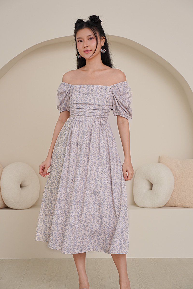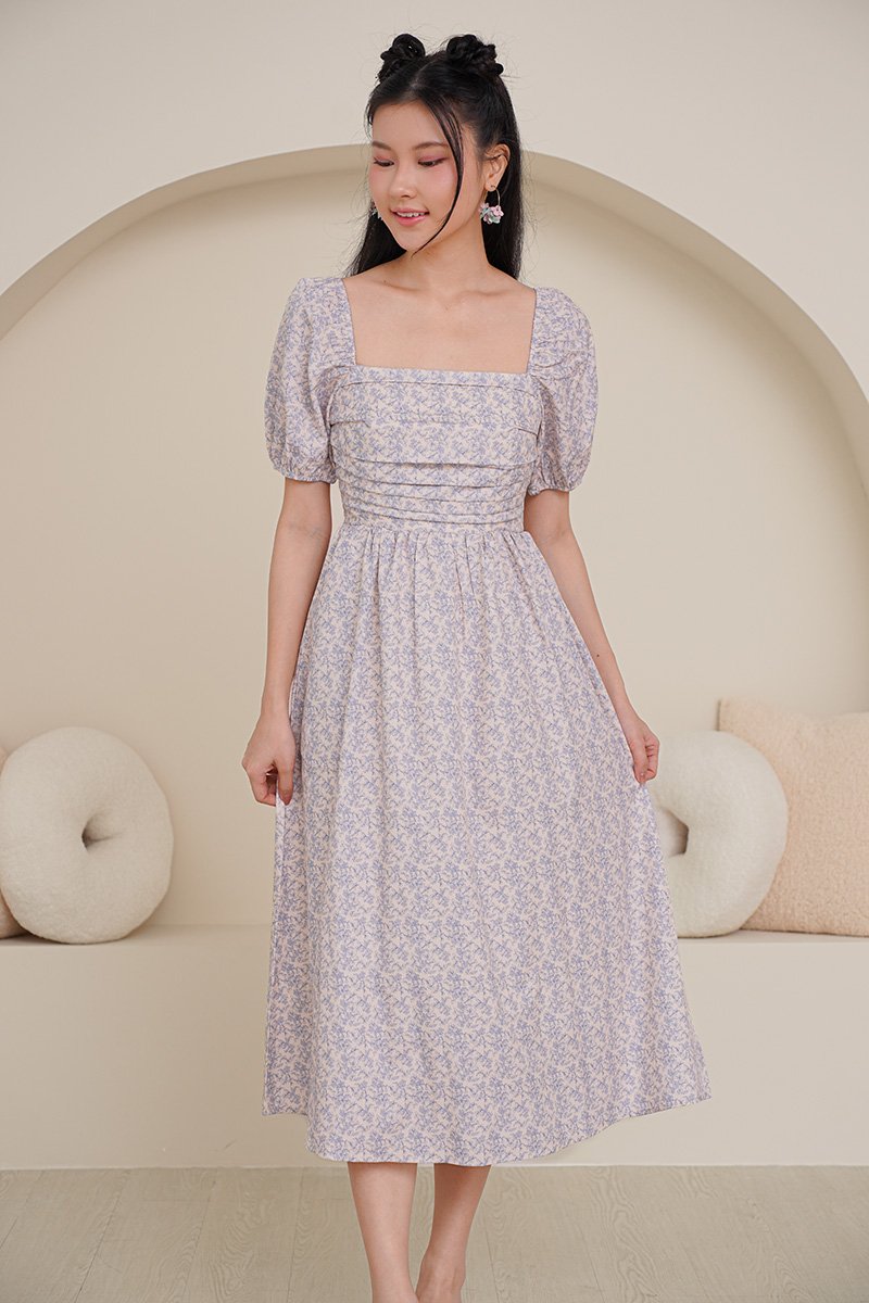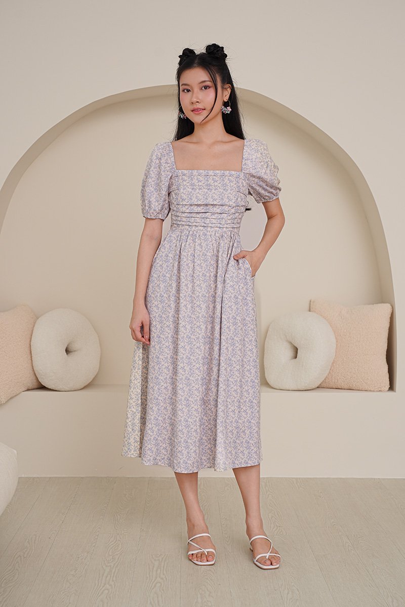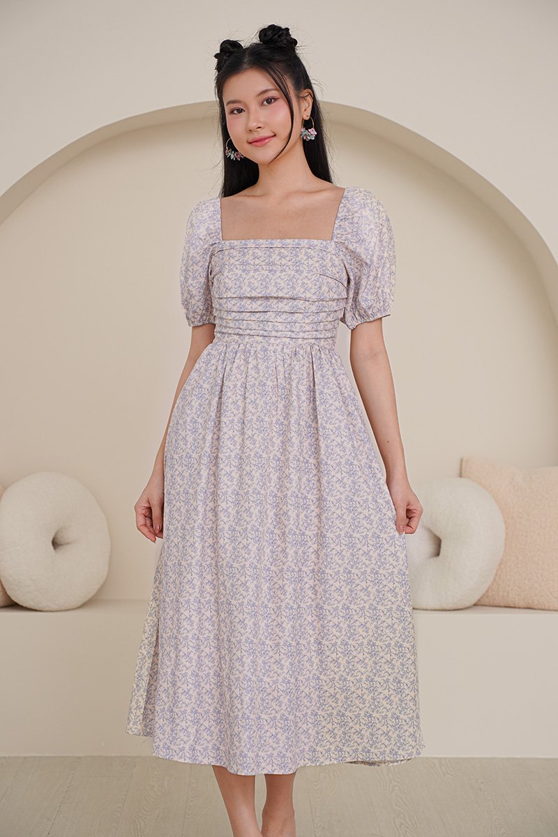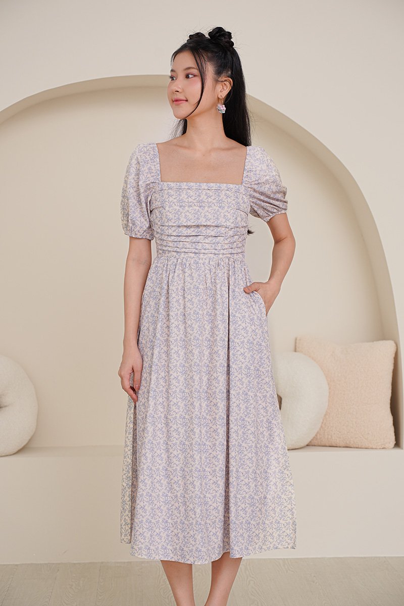 Poppy Prosperity Pleat Bust Midi Dress Blue