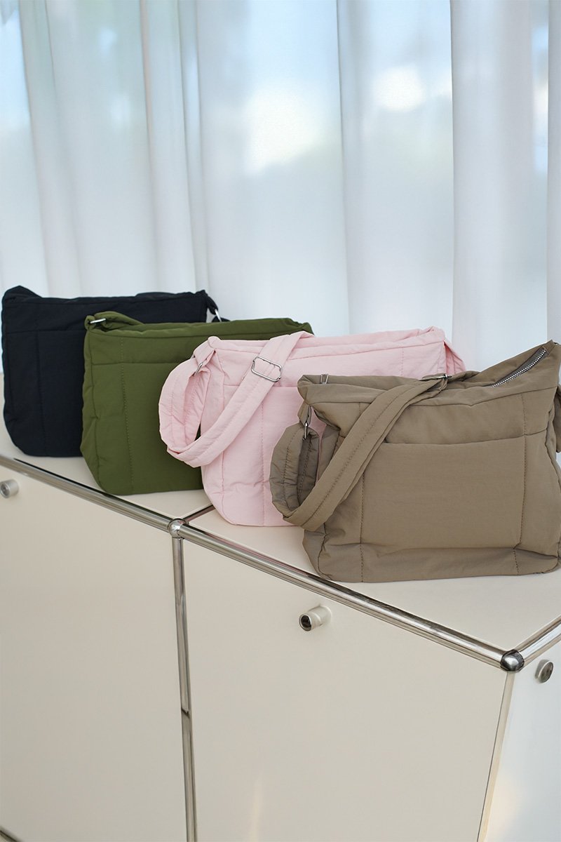 Your compact carry companion designed for effortless organization and everyday style. It features an exterior slip pocket for quick-access items, a zipped main compartment to keep essentials secure, and an additional interior slot pocket for stashing smaller valuables. This utility bag blends modern function with understated style. Its durable construction and multiple pockets keep your essentials organized, while the adjustable strap ensures a comfortable fit for daily wear. Our go-anywhere crossbody. Built for pace, purpose, and everything outside your door. This is where sleek design meets everyday adventure. Designed to stand up to everyday life, whether for work or exploring the city, made from durable washed nylon that'll resist pinches and scuffs. Cut in a classic rectangular messenger silhouette, it comes with a large compartment and external pocket that comes handy for your phone or parking tickets. From coffee runs to city strolls, park detours to weekend markets, it’s the bag that moves with you — hands-free, lightweight, and quietly clever with compartments to keep life’s essentials right where you need them. Made of quality nylon, cotton and comfortable polyester fiber lining, which is soft to the touch, water-resistant and durable; with zipper and magnetic button closure. Roomy & reliable, our puffer bag has got space for all your day-to-day essentials. Single exterior pocket for easy access to your essentials, and 1 interior slot for effortless organization. Hidden magnetic flap with an easy-access front pocket for security and quick grabs. Signature pocket detail with softly padded panels. Spacious interior with an inner slot compartment. Flexible outer slot pocket for quick, one-handed access to items you reach for regularly. The shoulder strap can be easily adjusted to your preferred drop – handbag, crossbody or shoulder bag. Comes in black, etoupe, pink and green. One size.