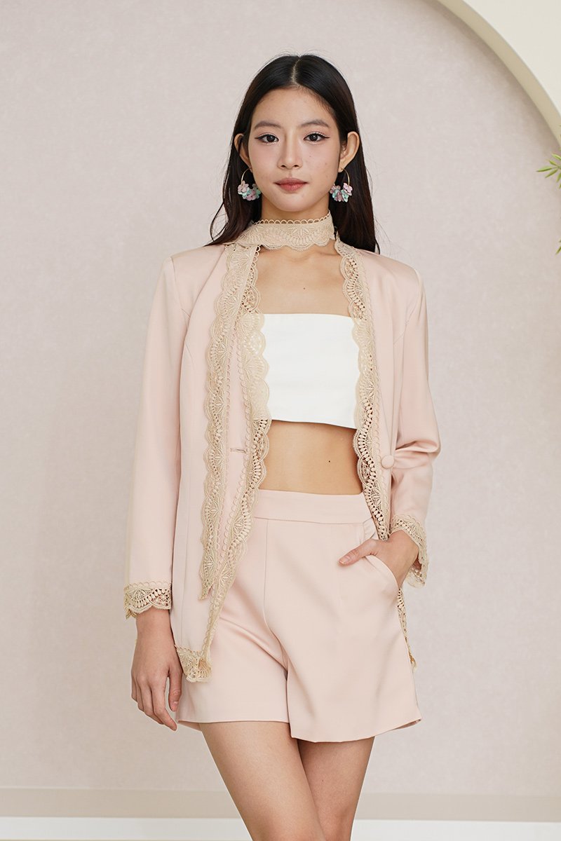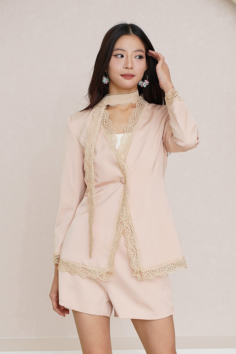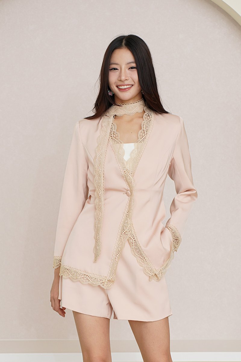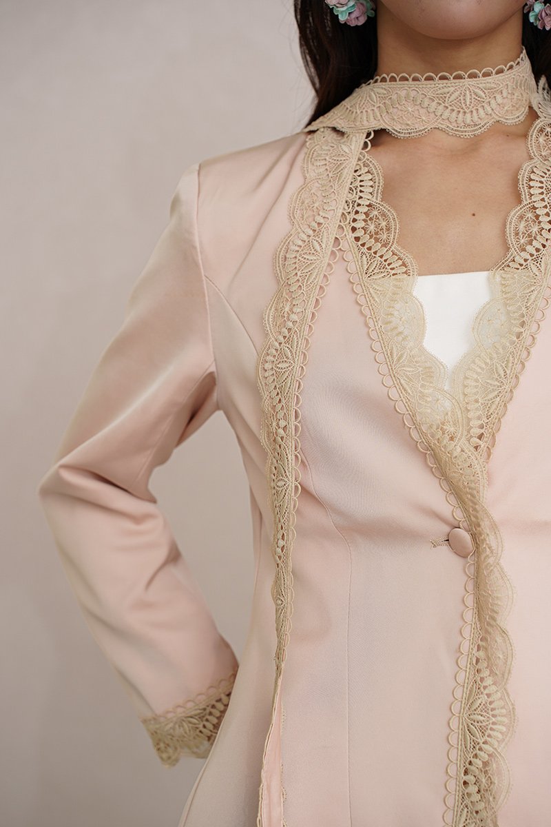 Right Lace Right Time Blazer with Lace Scarf Tie Champagne Pink