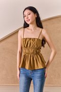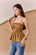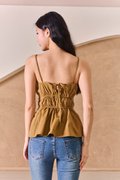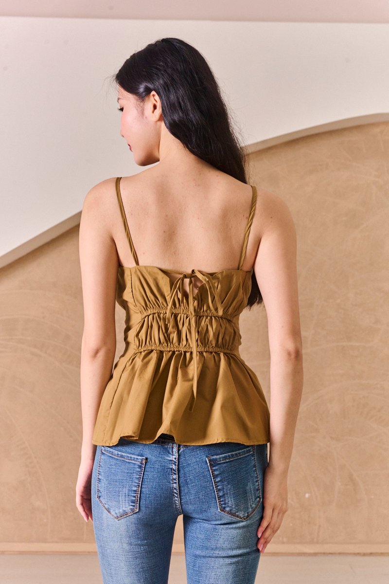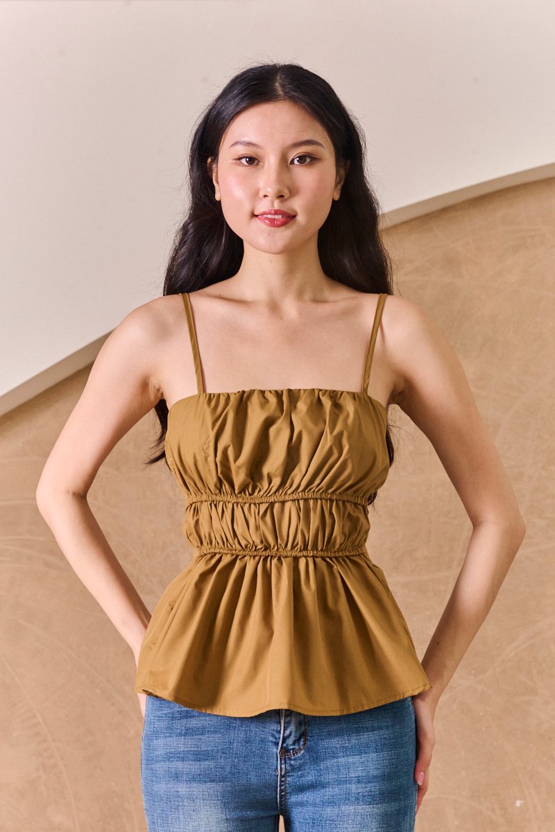 Scrunched Lineup Gathered Top Dark Khaki