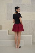 When we start with tulle, we leave a trail of tulle-worthy notes in its wake. We brought back our previous tulle dress in a sleeved version to cater to all you tulle lovers! Our spin on tulle dress is dark romance reimagined. This show-stopping mini features a round neckline with delicate gathering at the hem that creates alluring drama, while the bustier-style corset waist sculpts the perfect silhouette. The voluminous skirt with precise pleating adds that perfect touch of theatrical flair. Boasts a princessy seamed bodice that cinches your waist and ends with bold scallop detailing, before flowing into a beautiful colourblocked full tulle skirt. The dress is accented by a playful scallop waist detail that transitions seamlessly into a flowy tulle organza skirt. The mini length and mod sleeved cut give it a fresh, versatile look, perfect for day-to-night styling. With its unique contrast of colour and texture, this dress combines elegance and edge for a look that's both sophisticated and fun. Inspired by sculpture and architecture, the dress combines innovative construction with handcrafted gentle details. This style pairs a fitted solid top with a voluminous taffeta skirt, creating a stunning harmony between structure and flow, sheen and matte. Cut from a sumptuous blend of taffeta and cotton, this piece strikes a perfect balance between poised and polished, with pared-back round neckline tempering the ruffled details and colour at the hem. Provides a structured fit while scalloped edging at the waist and a flirty flared tulle skirt create a strikingly feminine silhouette. Framed with irregular scalloped edges below the waist, this delicate piece exacts a graceful yet precise fit. Simple and sweet, this modern favourite is ready for its debut. Fully lined, not sheer. Concealed back zip closure. Made of cotton polyester blend. Comes in mauve pink, red and cream. Available in sizes S, M & L.