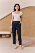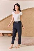 Styled with Cutting Precision Pleated Skorts Gunmetal Grey, Discerning Fit Tapered Pants Navy Blue and Moving Right Along Strappy Heels Cream.