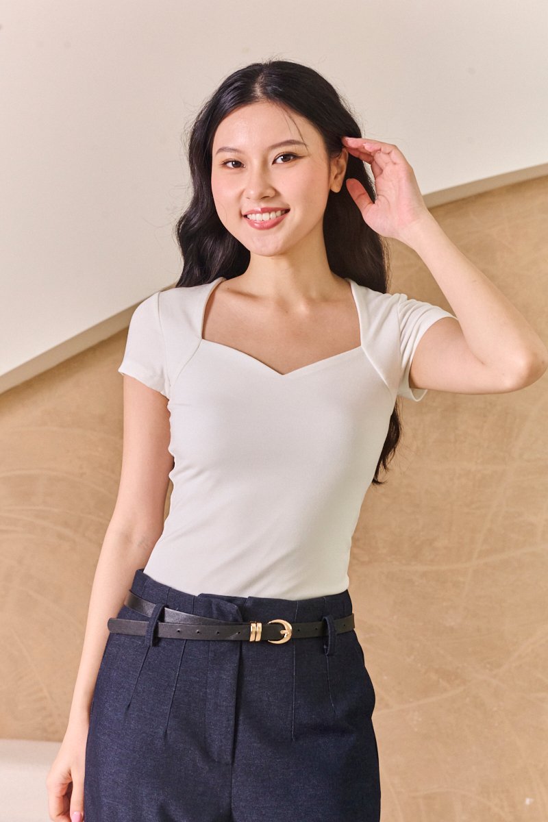 A short-sleeved blouse with a sweetheart neckline that accentuates the figure with a romantic and delicate touch. Its princess cut flatters the figure, adding structure and softness to the design for a flattering fit. Perfect to combine with classic jeans, midi skirts or tailored trousers, achieving a modern, feminine and balanced style. The ultimate blend of soft stretch, stylish detail, and everyday wearability. Designed with a romantic sweetheart neckline, delicate cap sleeves, and a rayon spandex fabric that hugs your curves, this made for everyday tee is both flattering and comfortable. Make a statement with this sculpting sweetheart basic - Designed to be fitted with a stretch to accentuate your form. A molded bust adds bold, bustier appeal to the top of this skin-tight coated top! Channel a flattering look that is lightweight, breathable and very stretchy, in this minimal and basic top that serves as great multi purpose clothing. Its soft rayon fabric is crafted with a splash of stretch to keep the skin-skimming silhouette totally comfy yet sturdy. Designed in a corset fit, fabricated with stretchy bodycon cotton rayon, there is no better way to show off your curves than in this form fitting, structured top with bodycon fit. Made to bring out the best of your curves to maximum figure flattering effect, this fitted top features a sweetheart neckline to seal the deal. This aesthetic top has a flexible build that fits, while also concealing those abdominal imperfections in excellent shape wear. A piece that exudes code casual but can be turned work appropriate in just a minute with pencil skirts, tailored pants, blazers or the like, this piece scores in versatility. Pull on styling. Made of stretchy 92% rayon (viscose) and 8% spandex. Comes in black and white. Available in sizes S, M, L & XL.