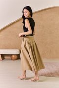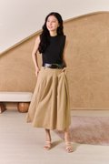 Uptown Contrast Pleated Belt Midi Dress Khaki