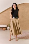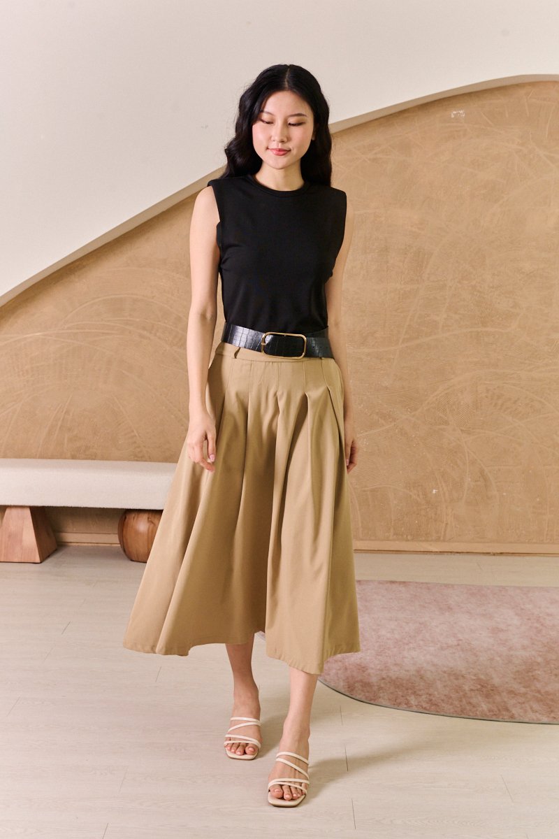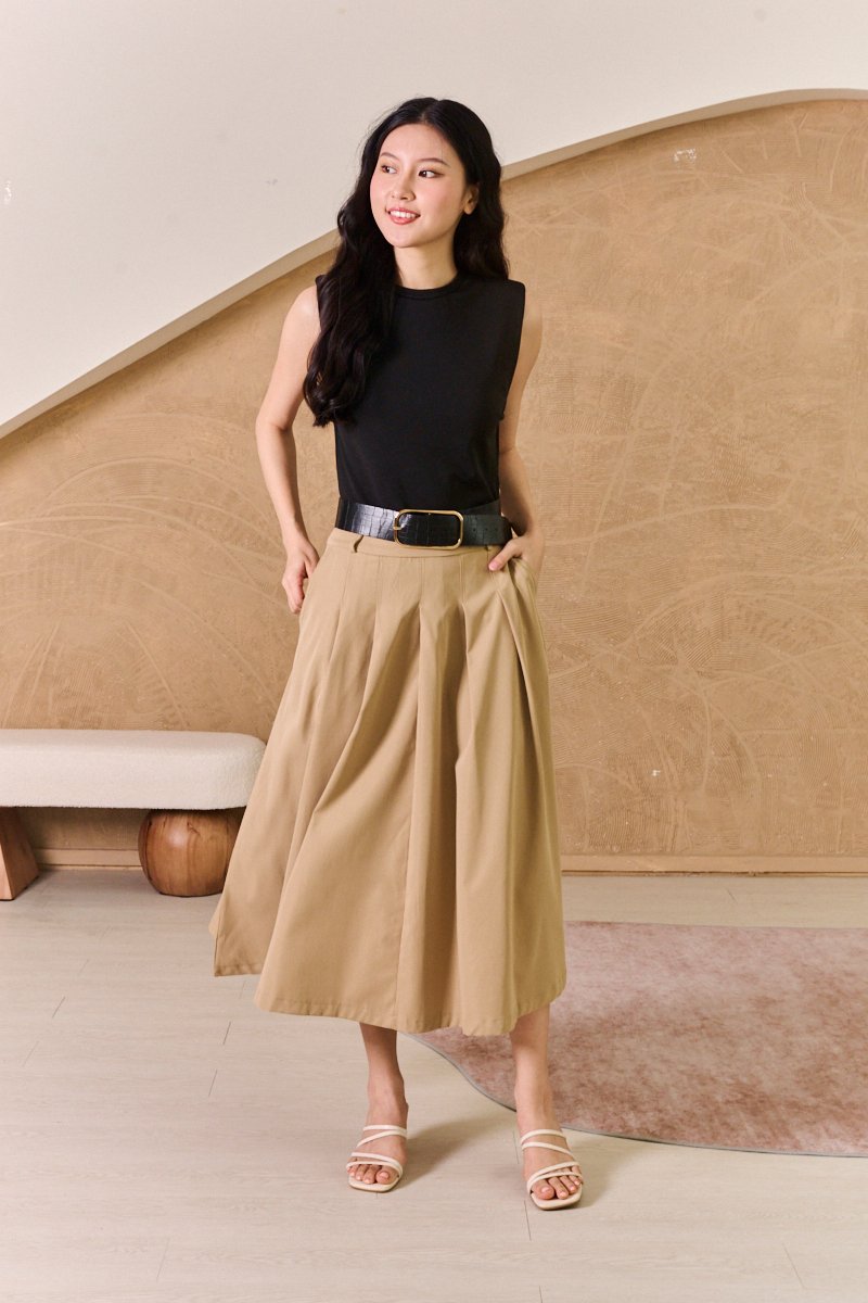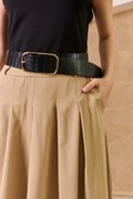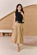 Simple but full of possibility, our two-toned dress with a cotton jersey knit bodice and cotton poplin skirt transcends decades and dress codes, making it the ultimate work-to-play dress. This utility-inspired dress boasts an easygoing midi, A-line silhouette. The nylon fabric gives it a crisp character. A classic box-pleat skirt made from a fluid fabric for comfort and ease. The clever design combines a sleek midi skirt with an attached tee top hem, creating an effortlessly layered look. This midi dress combines a fitted stretch muscle top with a pleated skirt. The contrast textures and flattering silhouette make it a standout for both day and evening occasions. The classic colour combinations of black, beige and green gives a vivid and powerful visual impact, epitomizing sophistication and style. The shoulders are padded to create a muscle tee look on top, juxtapose with a feminine bottom. The belt features faux alligator accent textures to bring further contrast to the look. Love to twirl? This lovely flowy work dress will have you spinning happily. This simple number boasts a fitted knitted body, and a cargo inspired utility flared skirt below that will have you set for the season! Channel relaxed elegance in this two-tone dress that boosts a mock layered styling with colourblocking and texture blocking. The look of a two-piece with the ease of a dress, this cute muscle tee dress has all the hallmarks of a classic tee dress style. Padded on shoulders, muscle tee top. Comes with side pockets. Belt loops but belt does not fit into belt loops. This is not a defect. Concealed side zip closure. Made of cotton twill blend. Comes in khaki and olive green. Available in sizes XS, S, M & L.